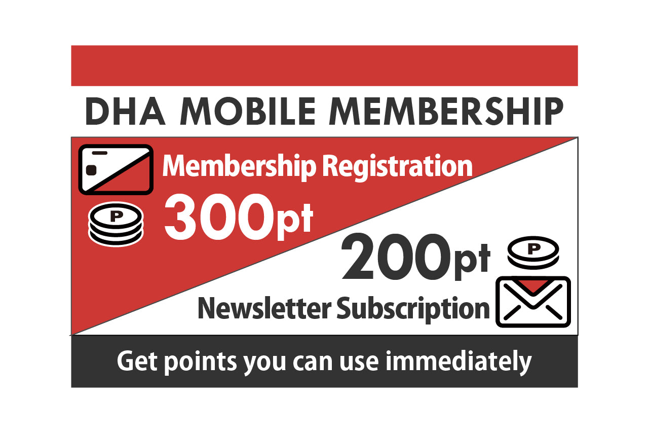 A great program with no admission or annual fees, where the points you earn increase according to your membership rank. Accumulated points can be used at DHA MOBILE ONLINE STORE at a rate of 1 point = 1 yen. Get 300 points immediately upon registering as a member!