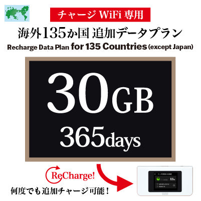 [チャージWiFi専用 追加データプラン] 海外135カ国 | 365日 | 5GB / 10GB / 30GB